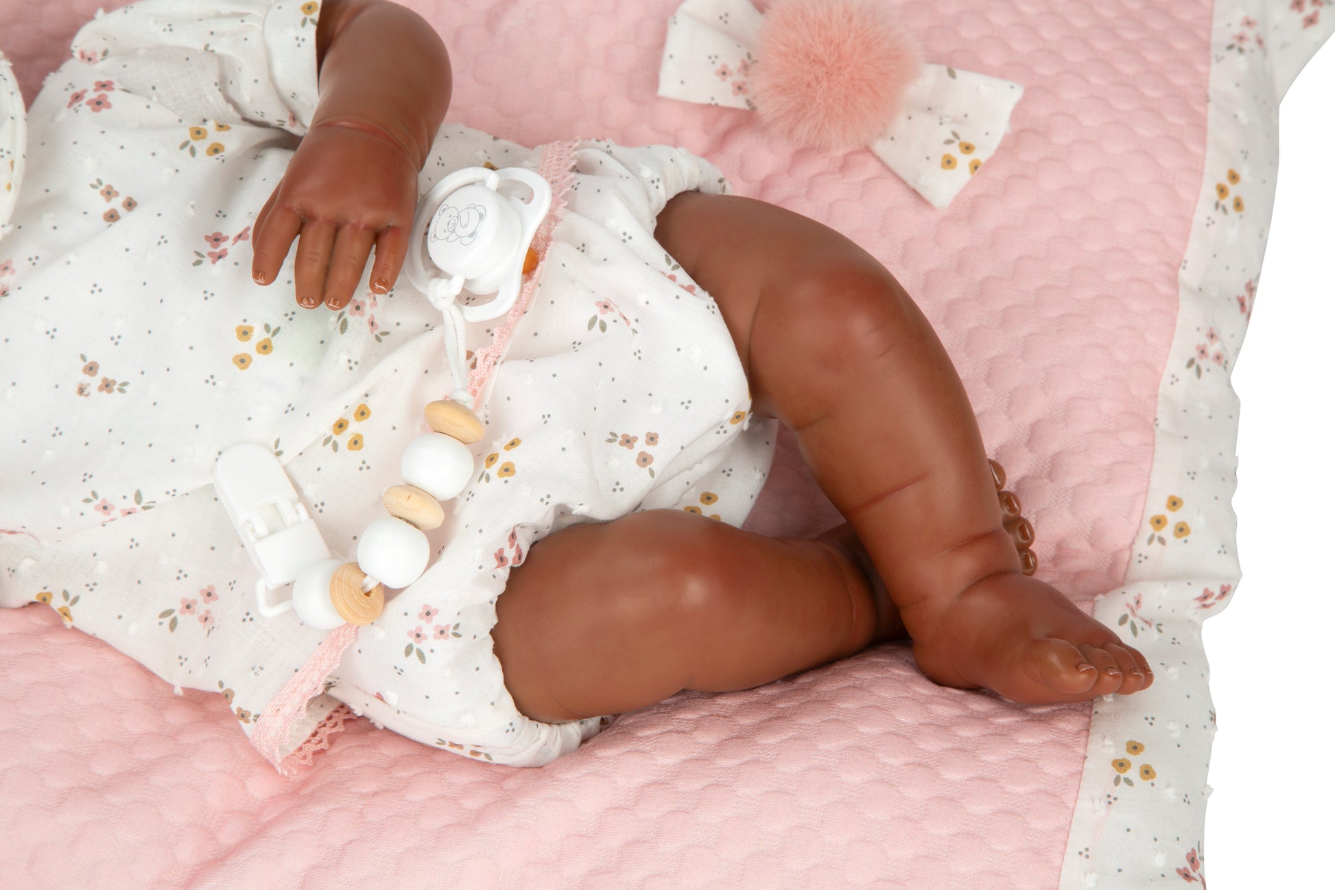 El Bebé Reborn Sasha de Muñecas Arias es pura dulzura y realismo. Con 45 cm de altura, esta preciosa muñeca mulata está elaborada con cuerpo blando y extremidades de vinilo suave, consiguiendo una textura y peso muy similares a los de un bebé real 🤍.