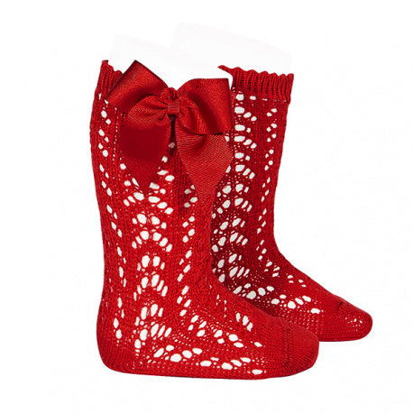 Calcetines altos perlé calados con lazo grogrén ROJO Cóndor