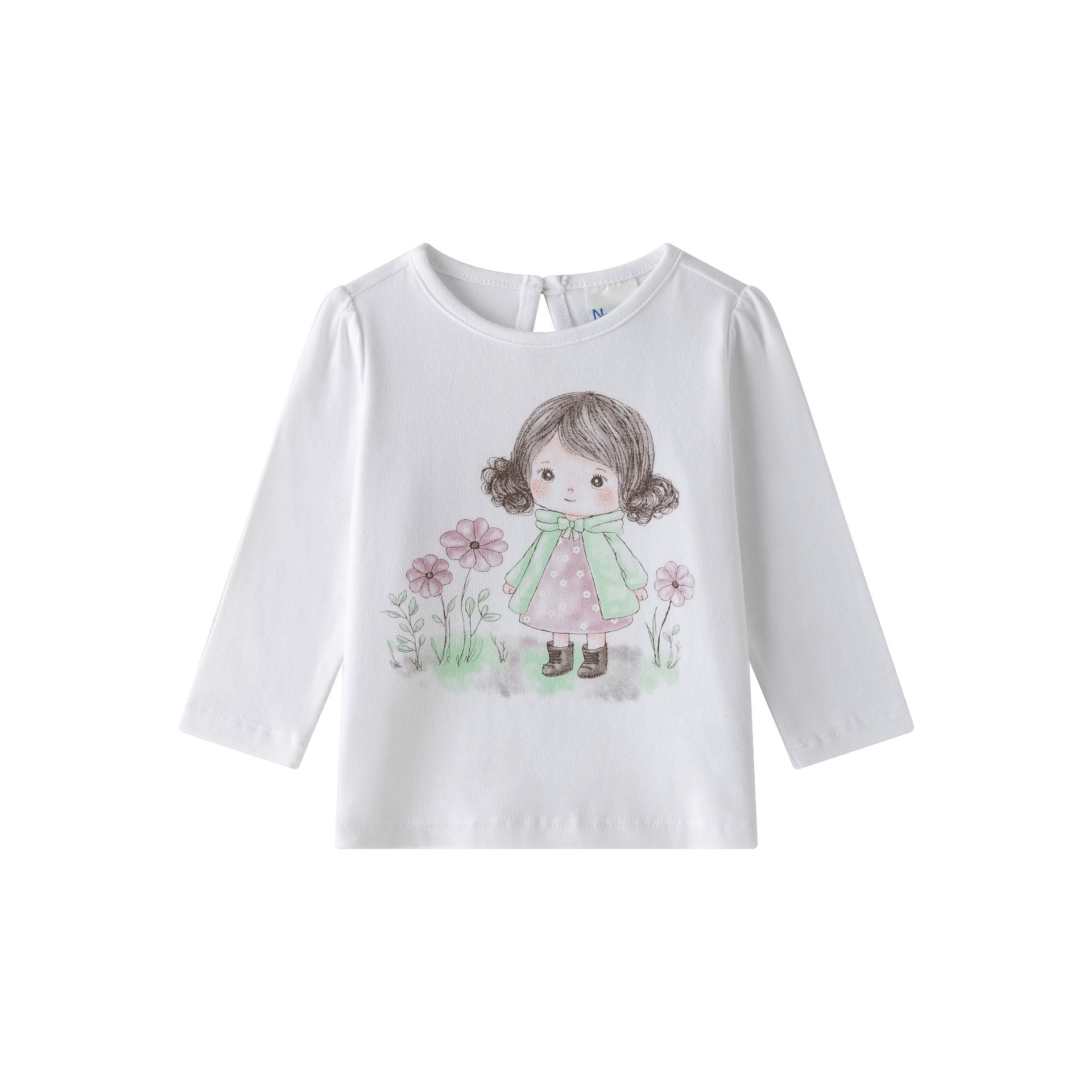 Disponible en color blanco y tallas 6/9M, 12M, 18M y 24M, se convierte en un básico versátil que combina fácilmente con jeggings, faldas o pantalones de la colección.