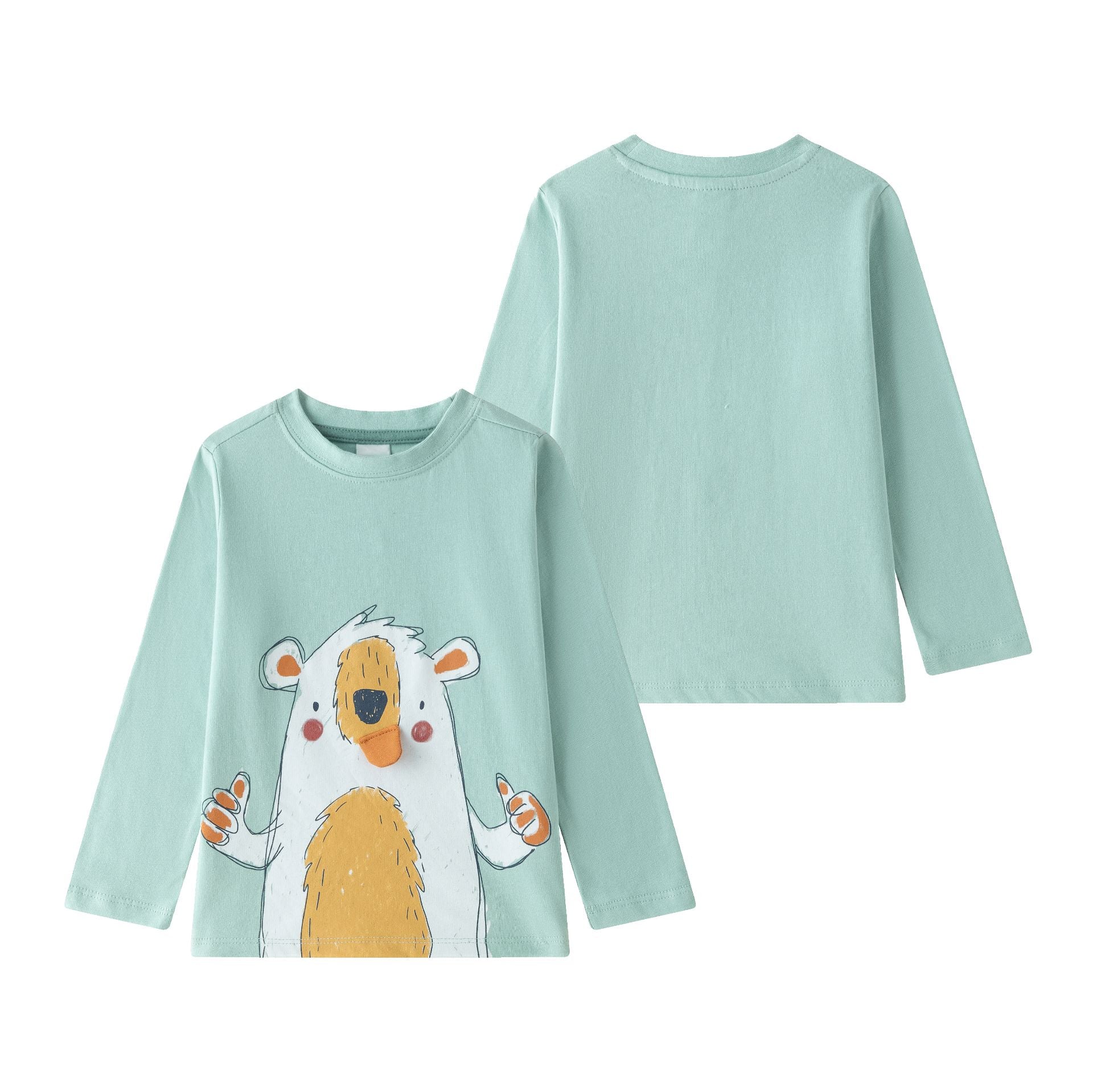 Camiseta niño manga larga verde con gráfico de ositos | 2-6 años
