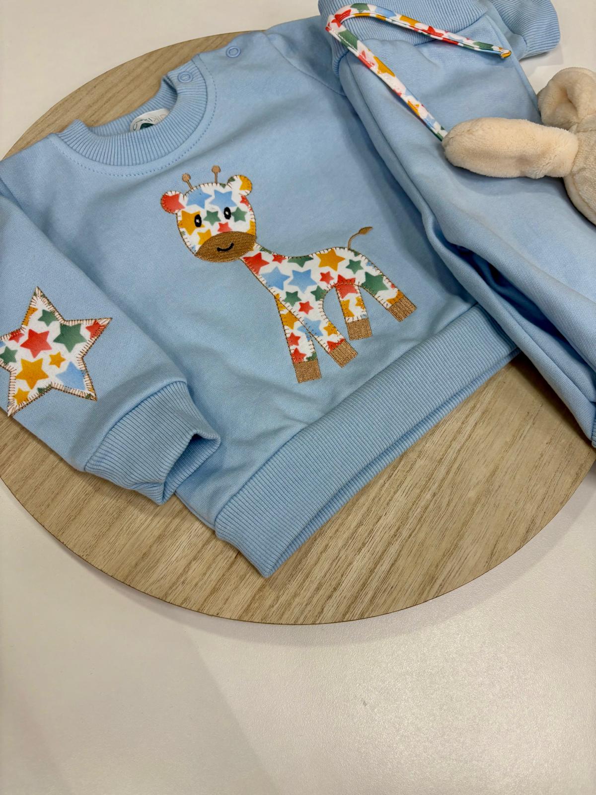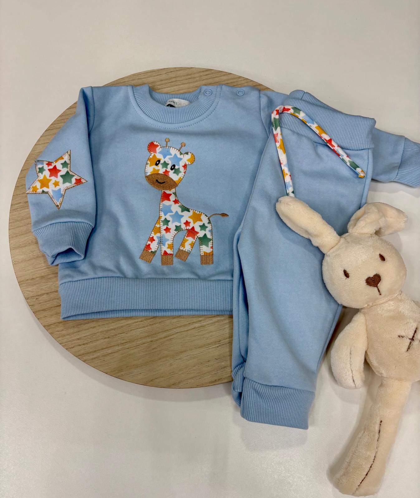 Chándal bebé celeste con jirafa y estrellas – niño 6-48 meses