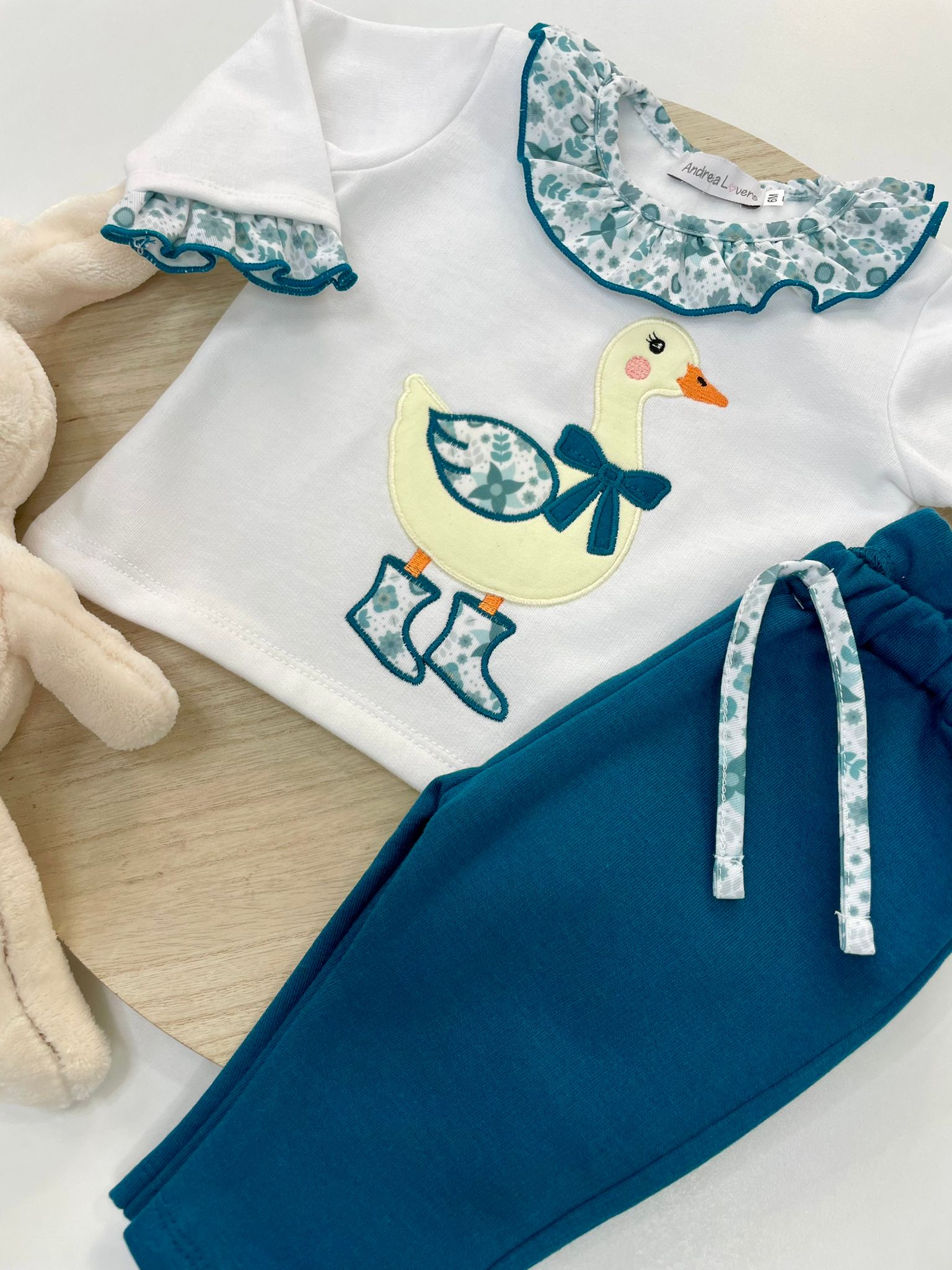 Chándal bebé niña patito 🐥 sudadera crudo con cuello volante | 6-48M