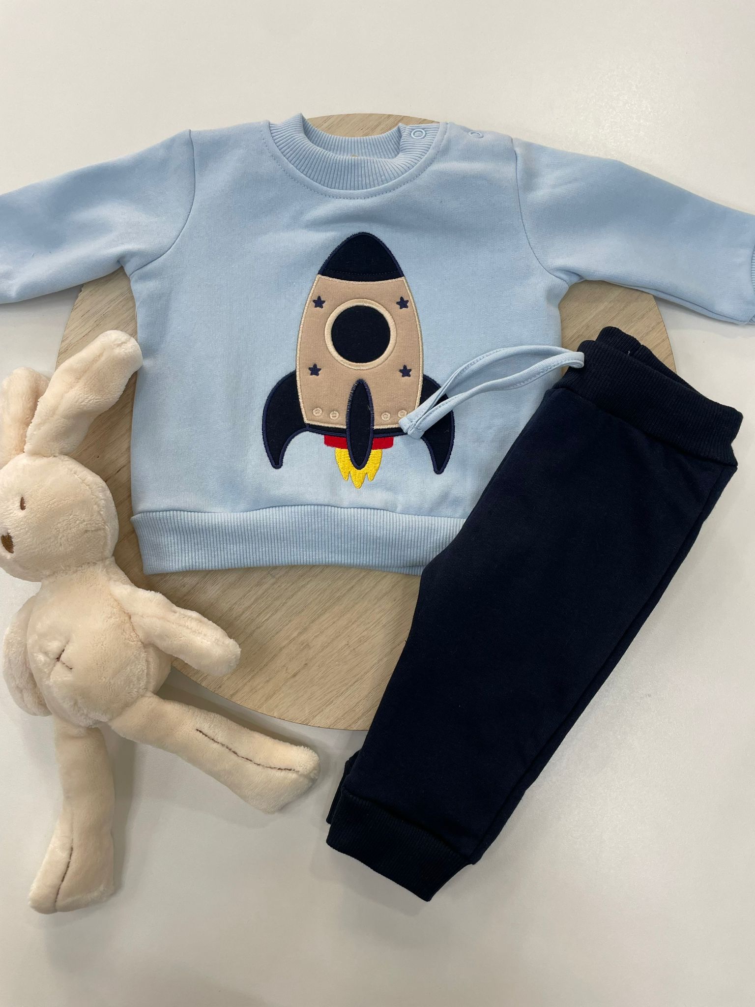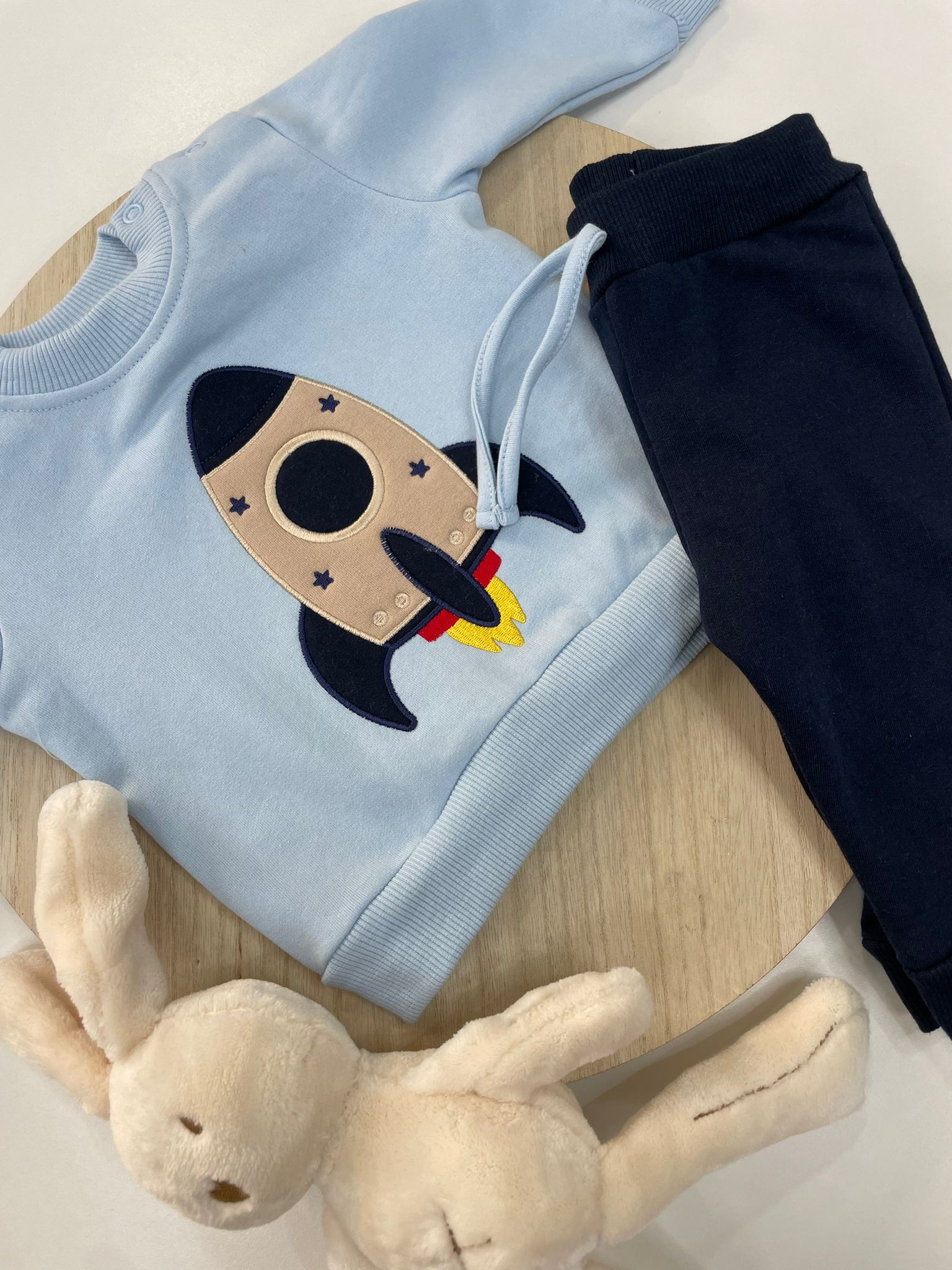 Chándal bebé niño celeste con dibujo de cohete 🚀 interior calentito | 6-48M