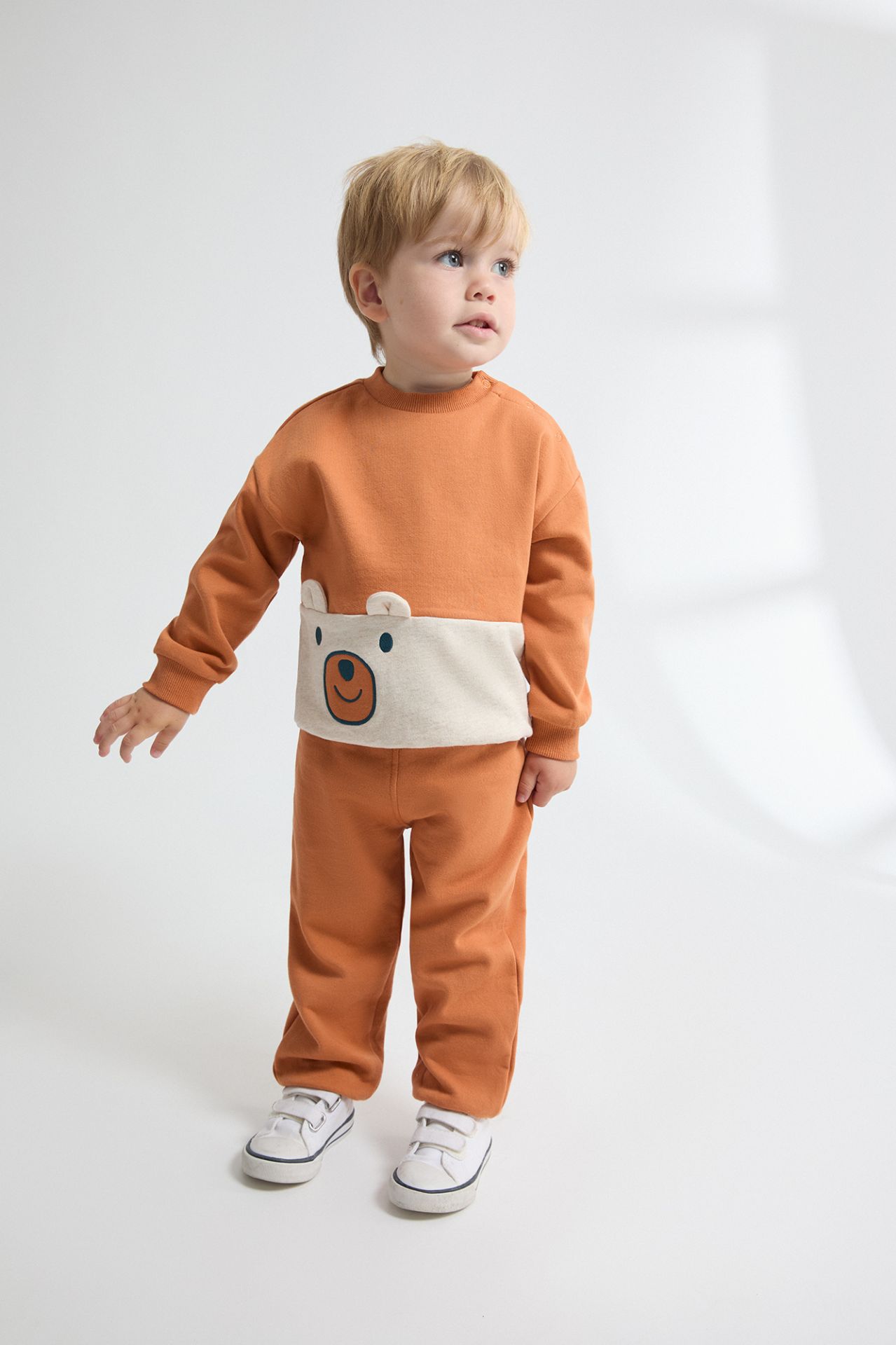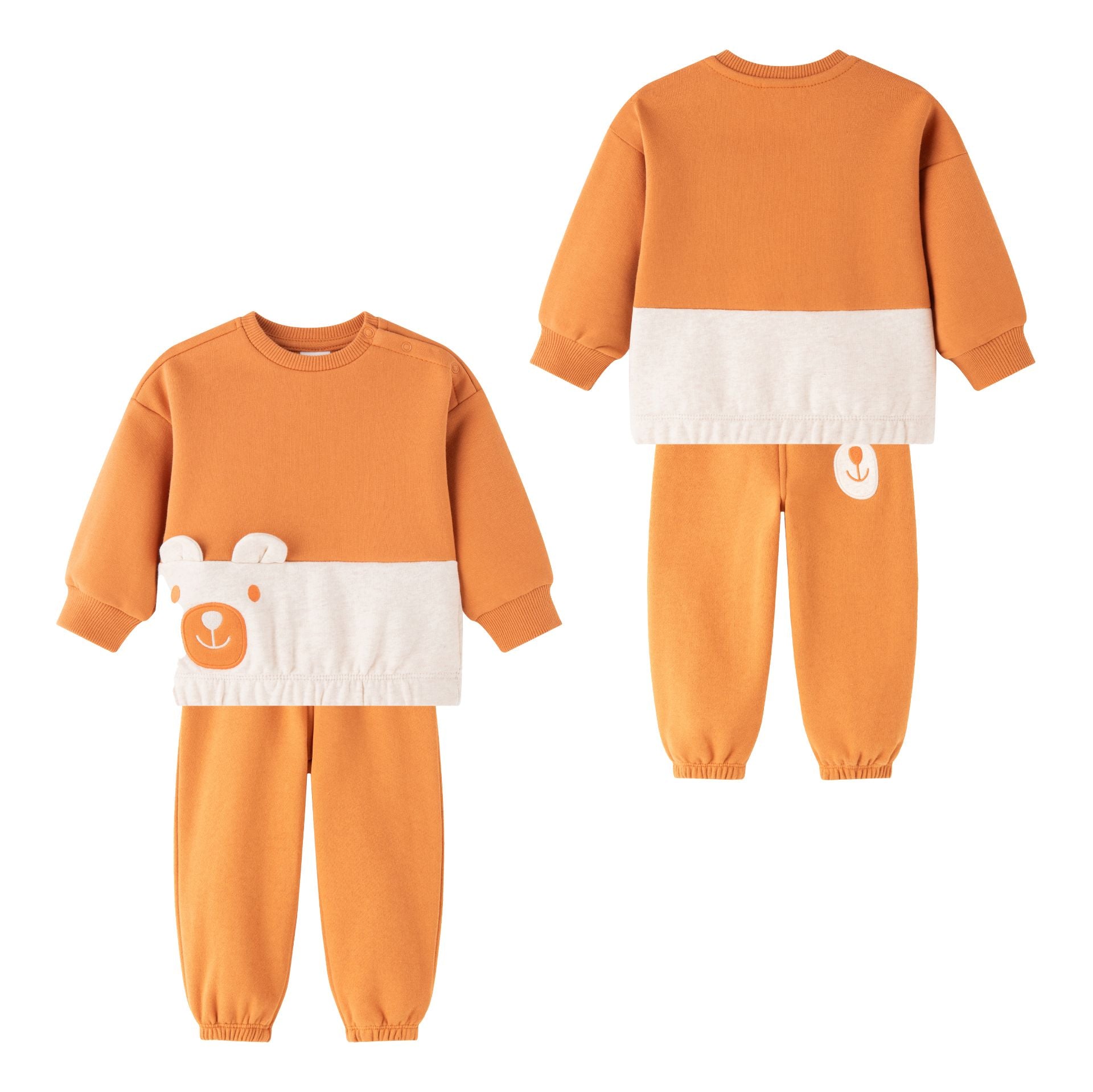 Conjunto Bebé Niño – Sudadera Felpa con Osito y Pantalón Largo Afelpado (6-24M) 🧡🐻