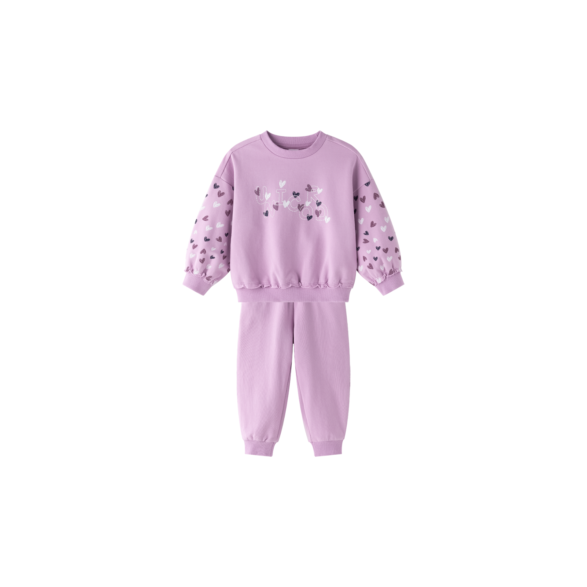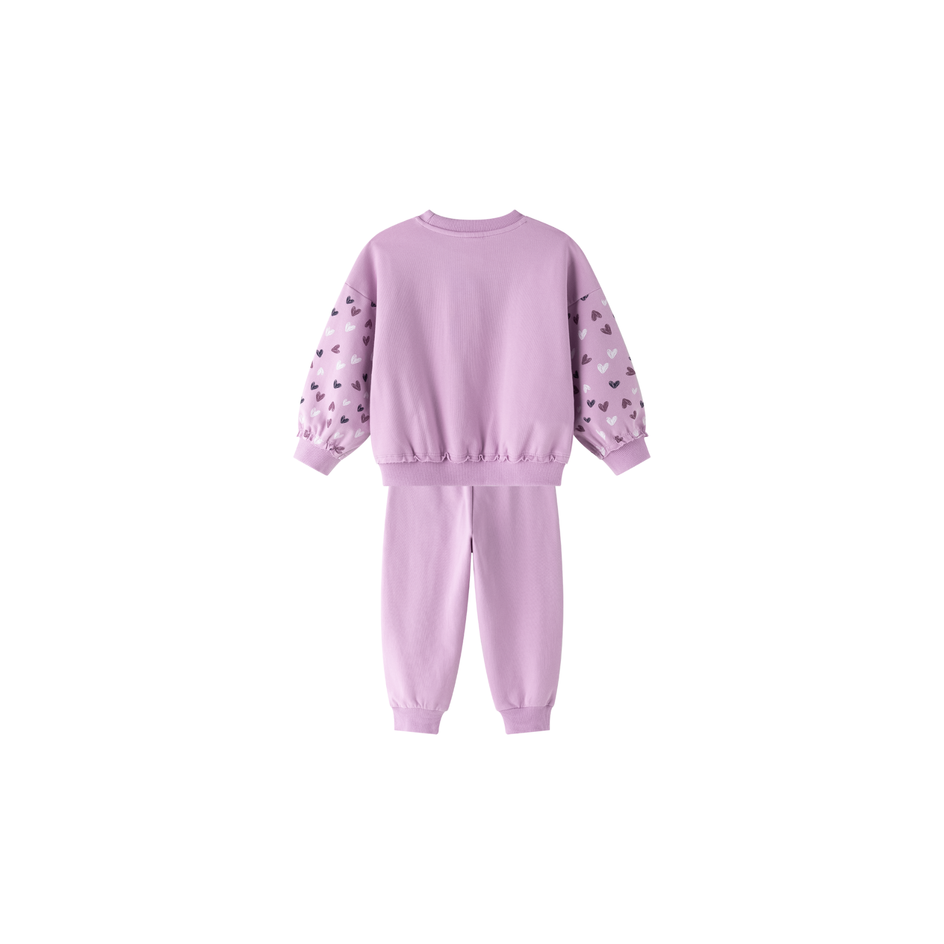Conjunto niña sudadera y pantalón morado con apliqué de corazones | 2-6 años