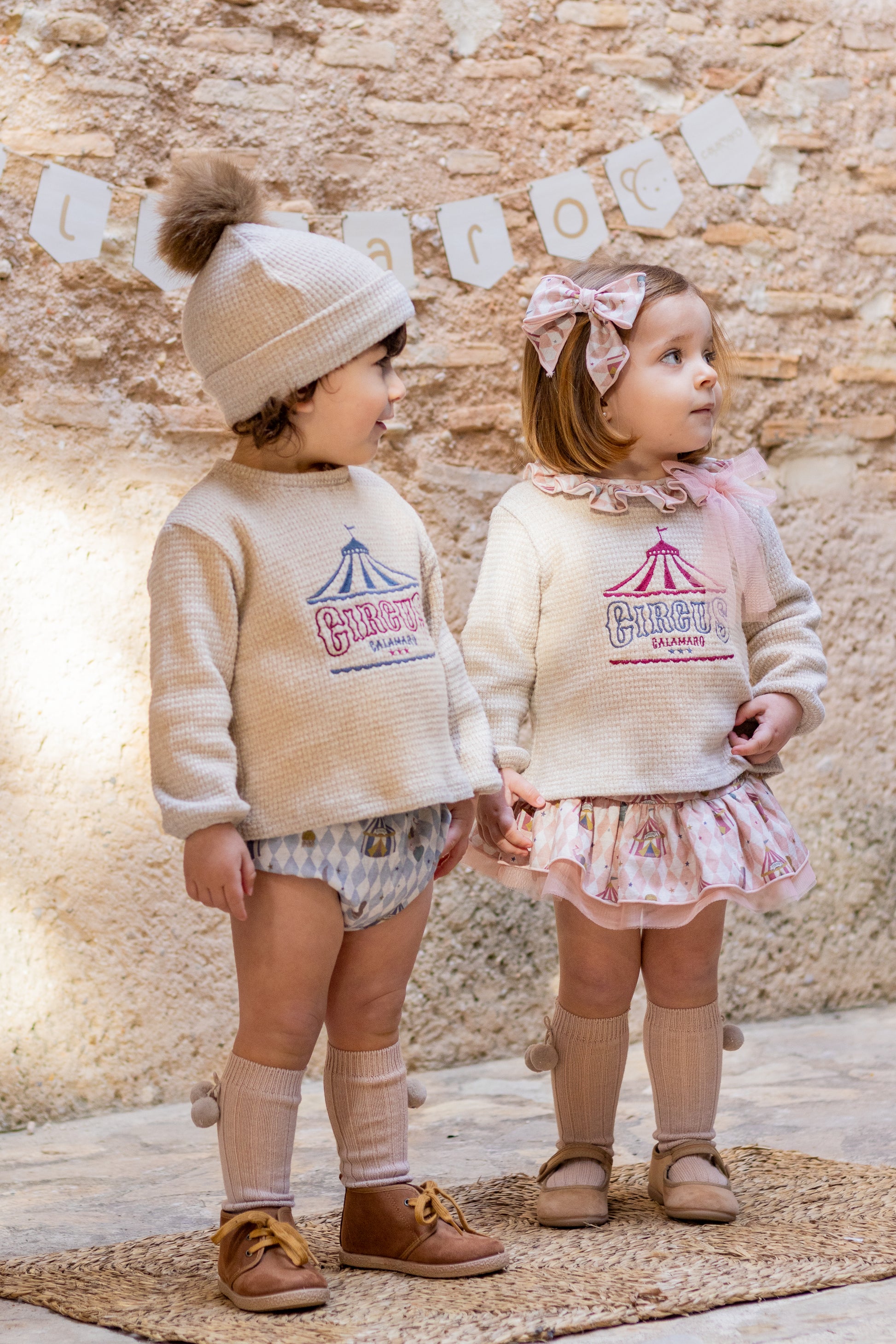 Incluye una camiseta de manga larga y un cubrepañal a juego, ambos con detalles cuidados que mantienen un estilo limpio, dulce y atemporal. Perfecto para vestir con elegancia tanto en el día a día como en ocasiones especiales.