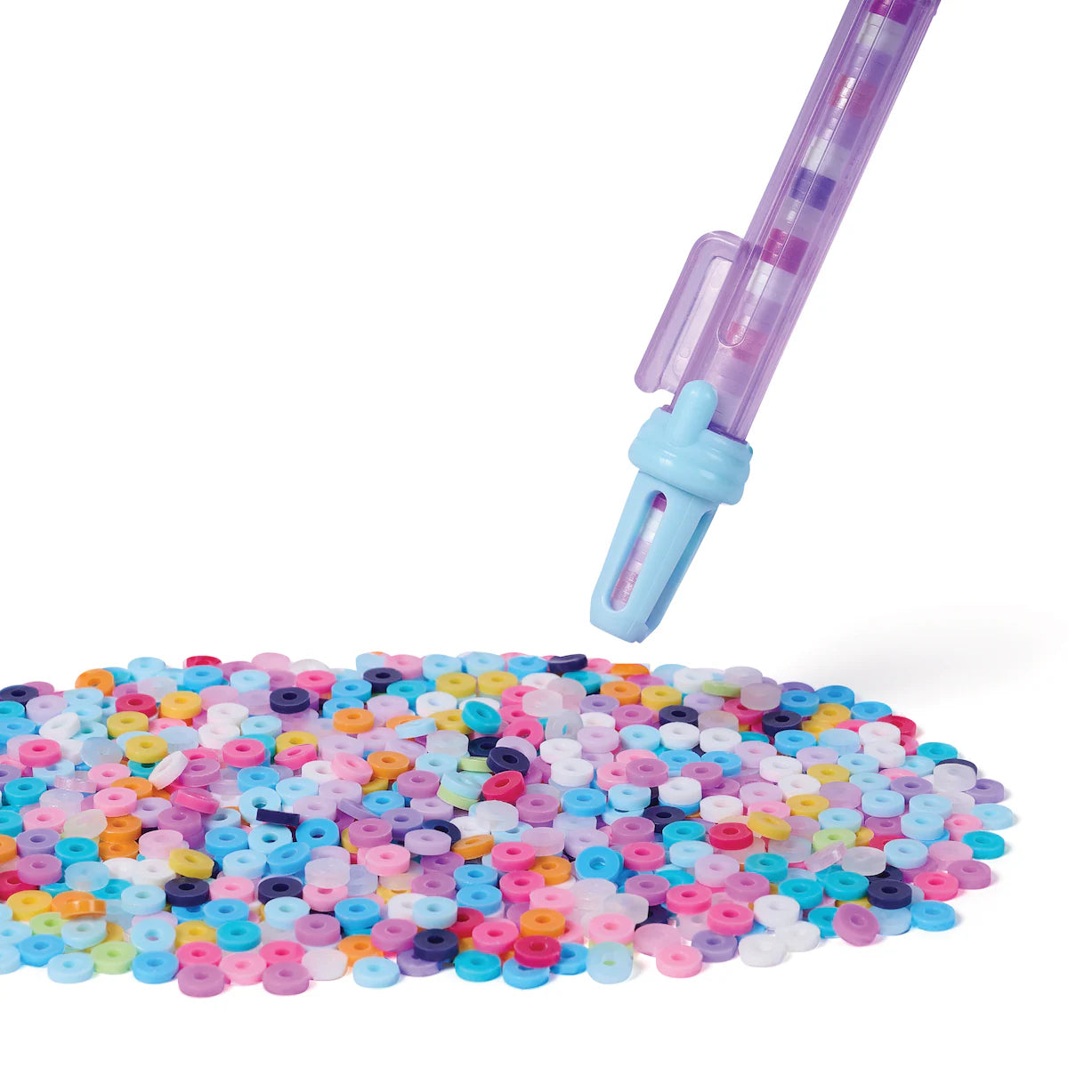 Crea pulseras Heishi a la moda en un abrir y cerrar de ojos con el Taller de pulseras Stack’d Heishi de Cool Maker. Este completo kit de creación de pulseras incluye todo lo que los niños y niñas necesitan para crear fácilmente 15 pulseras, como más de 1200 cuentas Heishi de colores, 10 cuentas especiales, un bolígrafo de cuentas y mucho más. Las niñas podrán comprobar fácilmente la talla de su muñeca con la guía de medición: solo tienen que hacer coincidir el símbolo con el del bolígrafo de cuentas para crear una pulsera de la talla correcta. Recoge las cuentas con el bolígrafo y observa cómo se van apilando en el interior hasta formar un precioso diseño. A continuación, introduce las cuentas directamente en el cordón con ayuda del Taller de pulseras. Pasa la muñeca por el interior del taller y pulsa el botón para que la pulsera se cierre como por arte de magia.