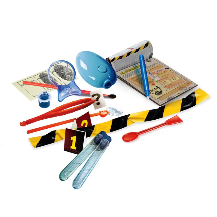 Un kit completo con todo lo necesario para analizar escenas del crimen, descubrir pistas y resolver misterios como un profesional.