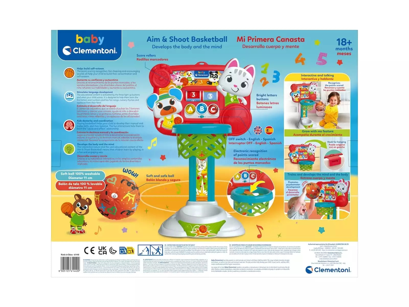 Mi Primera Canasta Interactiva (+18 meses)🏀✨ Baby Clementoni – Ref.: 61440
