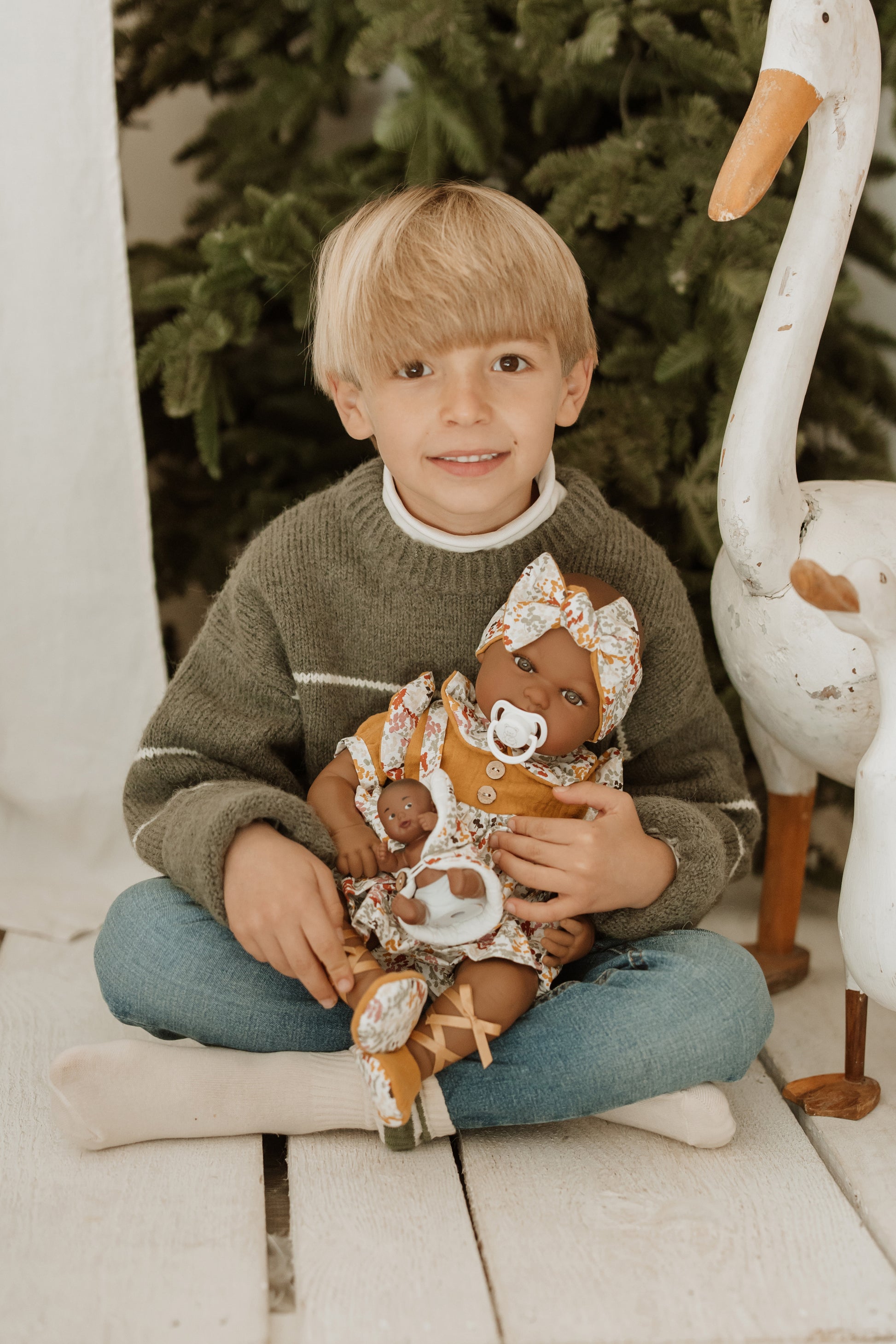 La muñeca Mies Mulato y su bebé Aran de la colección Elegance de Arias son pura dulzura y elegancia 🌿. Con una altura de 45 cm, Mies luce un precioso conjunto en color mostaza con estampado floral, inspirado en el estilo africano más auténtico y lleno de vida.