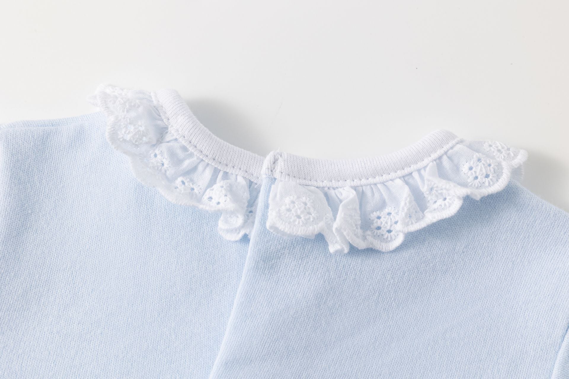 Bodies blanco y celeste con puntilla