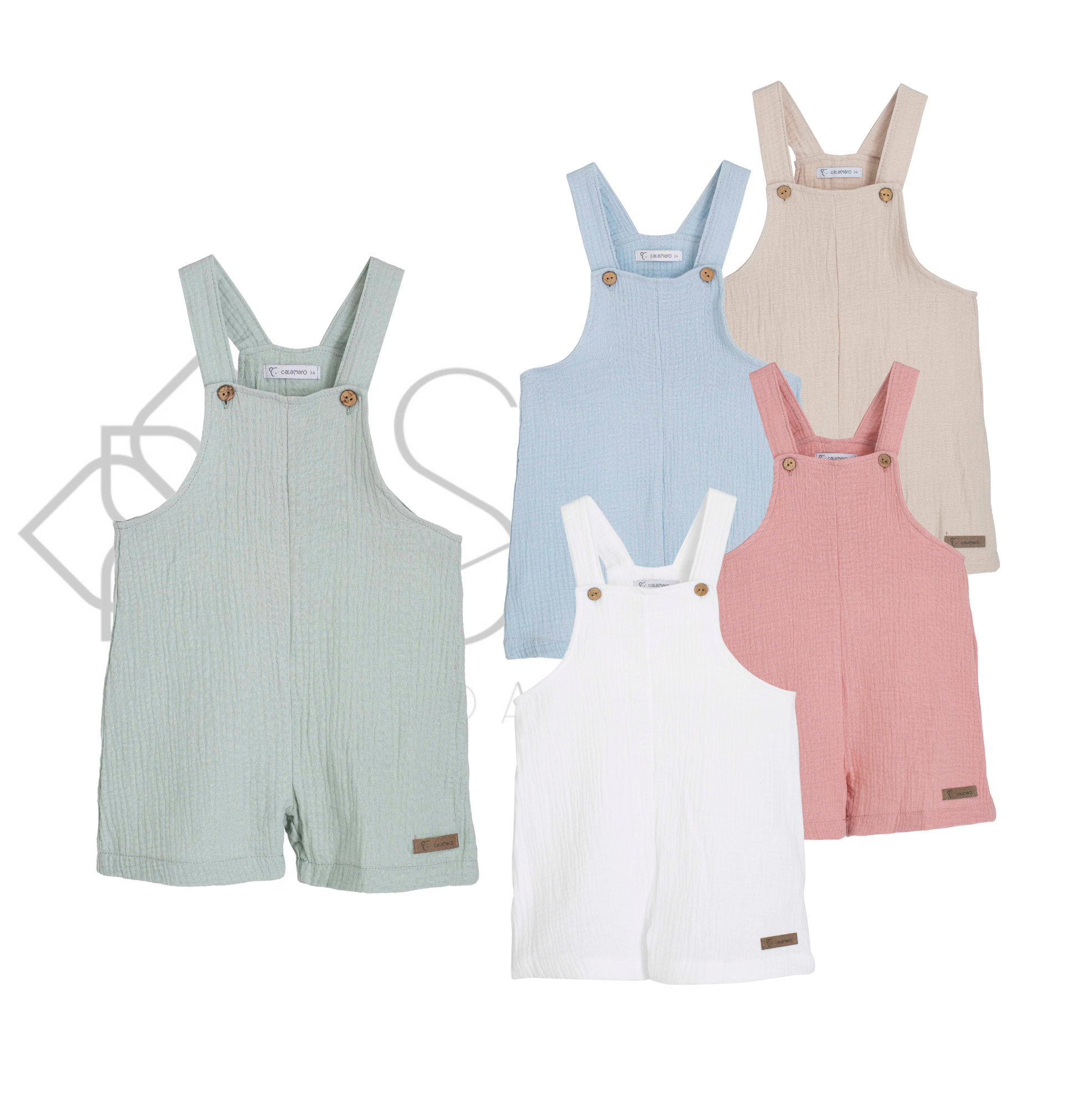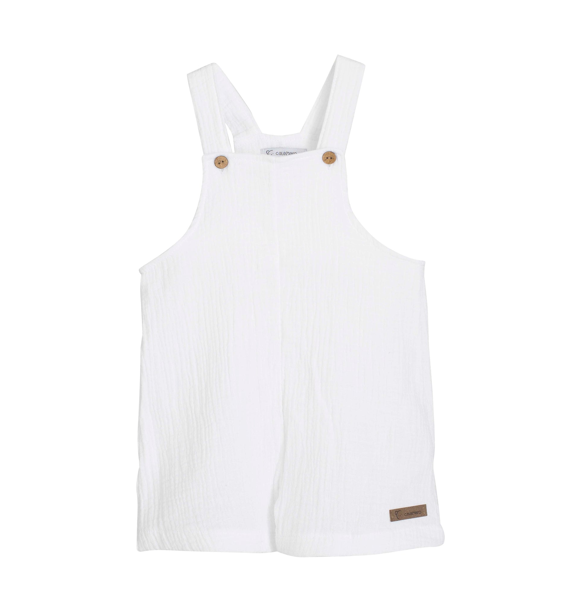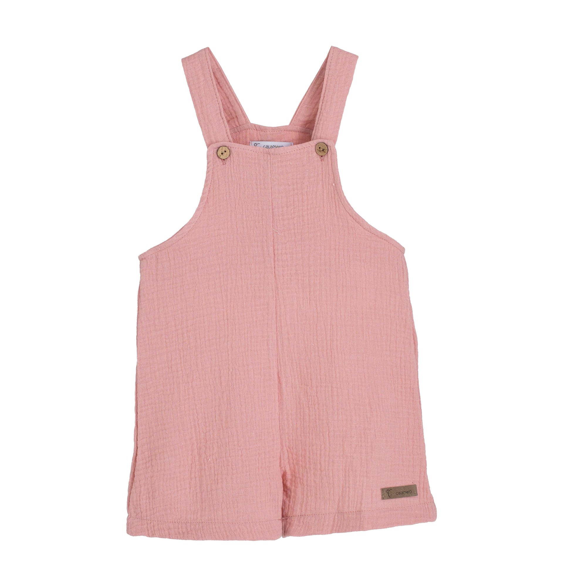 Confeccionado en un tejido ligero y suave, destaca por su diseño cómodo con tirantes anchos y botones de madera, que facilitan el cambio y aportan un toque natural y cuidado. Su corte holgado permite libertad de movimiento, ideal tanto para bebés como para niños.