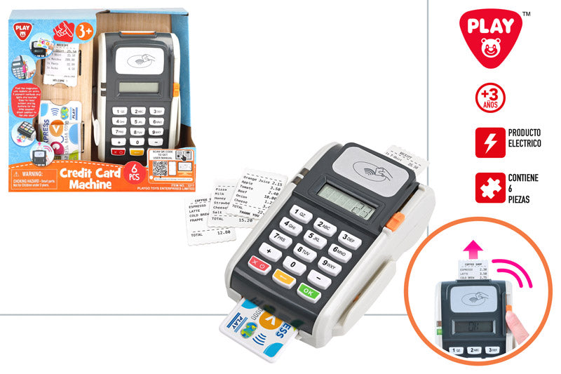 El Datáfono Electrónico Playgo permite a los peques simular el pago en sus juegos de tiendas. Con sonidos realistas, botones interactivos y tarjetas de juguete, favorece el juego simbólico mientras aprenden hábitos cotidianos.