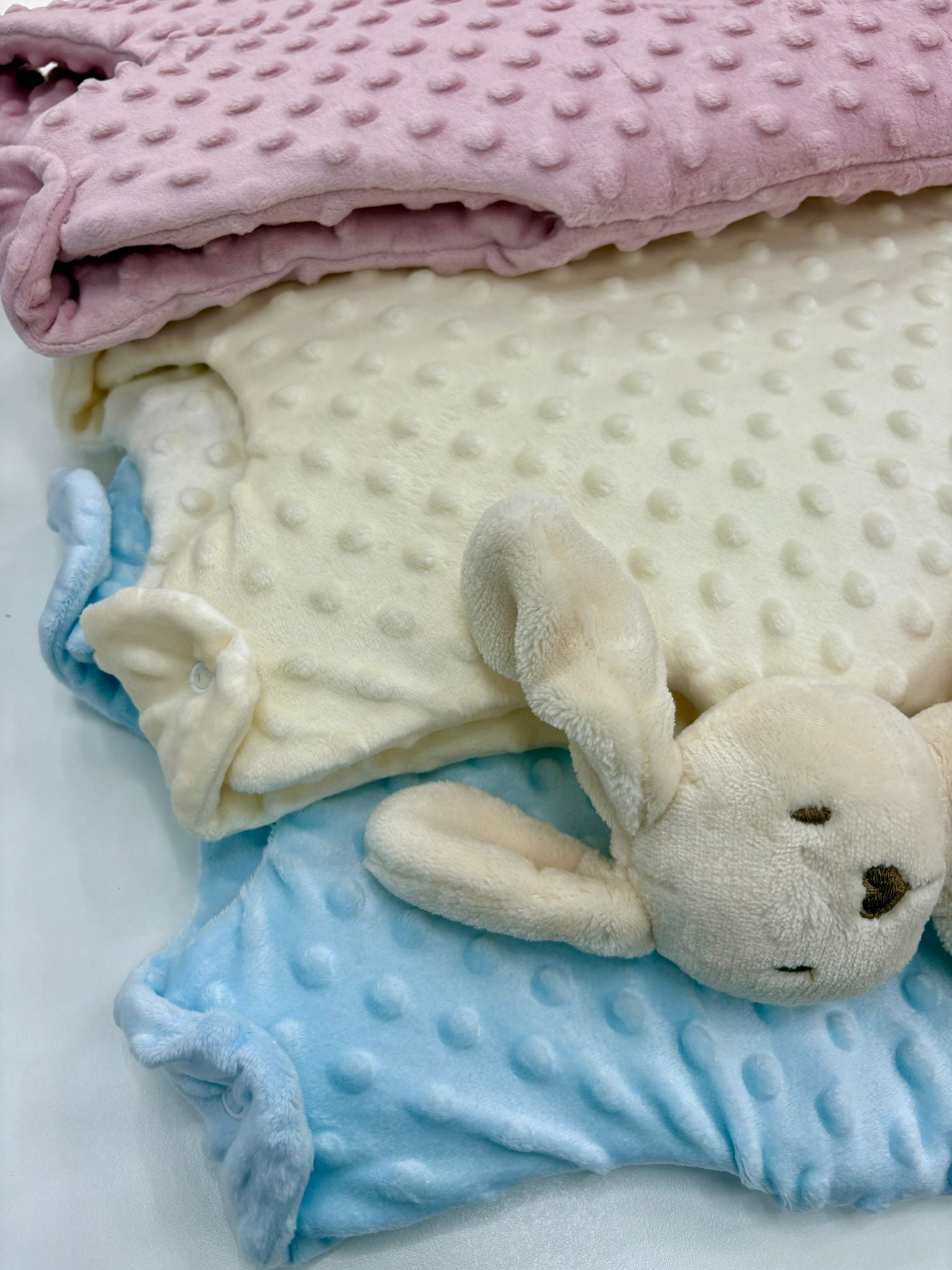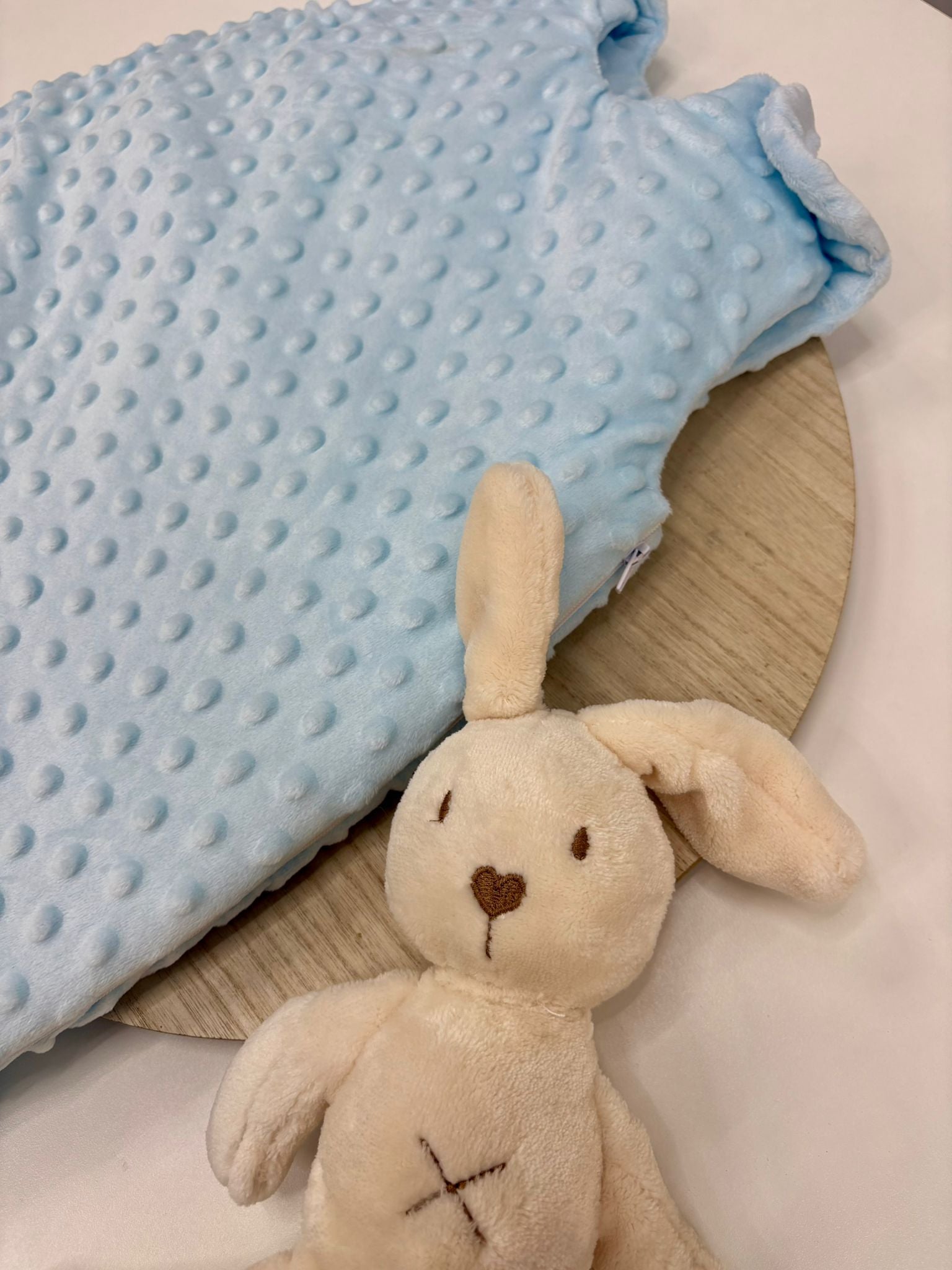 Duerme tranquilo sabiendo que tu peque está cómodo y abrigado 💖. Este saco para dormir de bebé está confeccionado con un tejido suave tipo minky con textura de topitos, ideal para mantener el calor y ofrecer el máximo confort durante la noche.