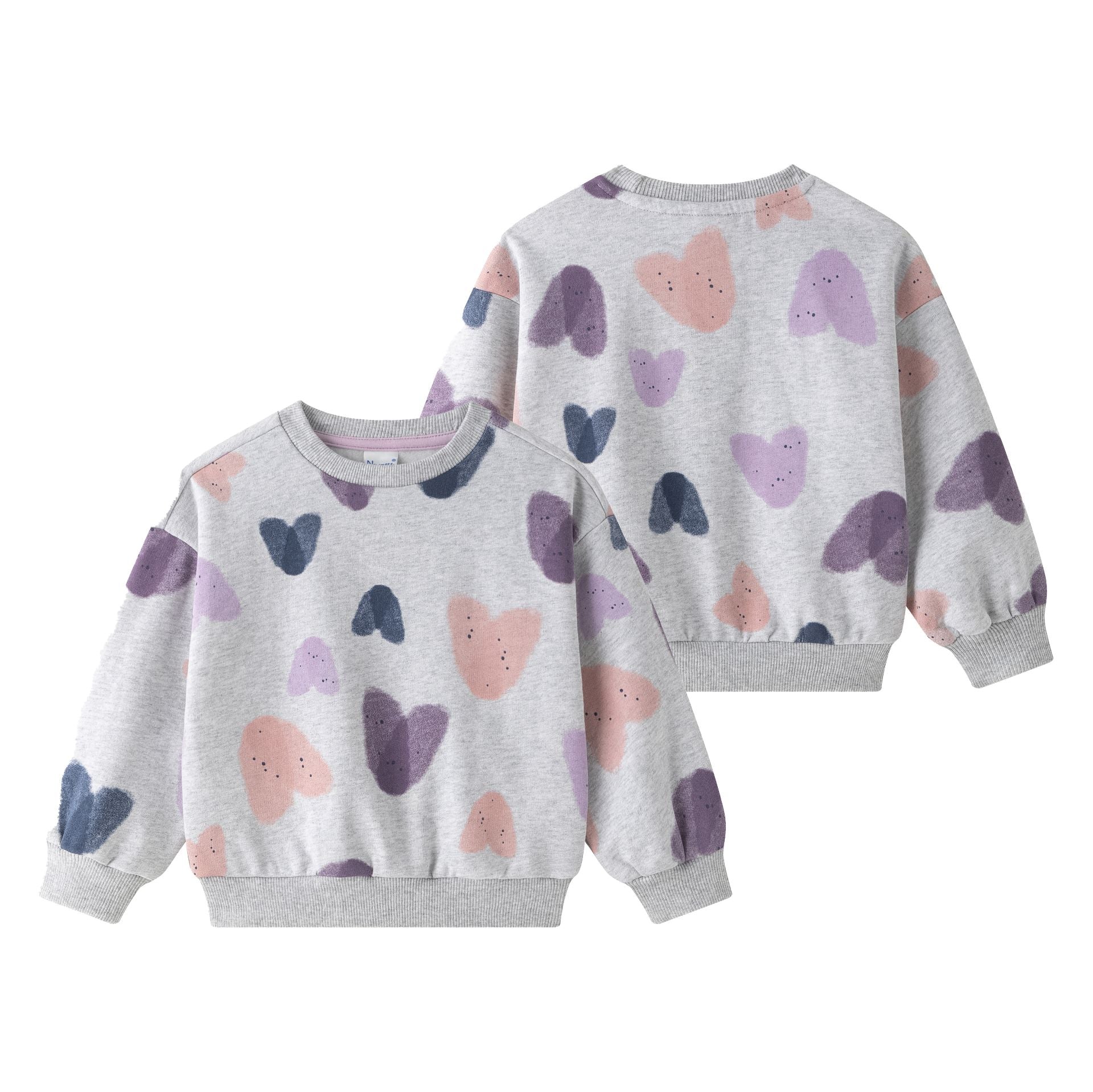 Sudadera niña gris afelpada con estampado de corazones | 2-6 años