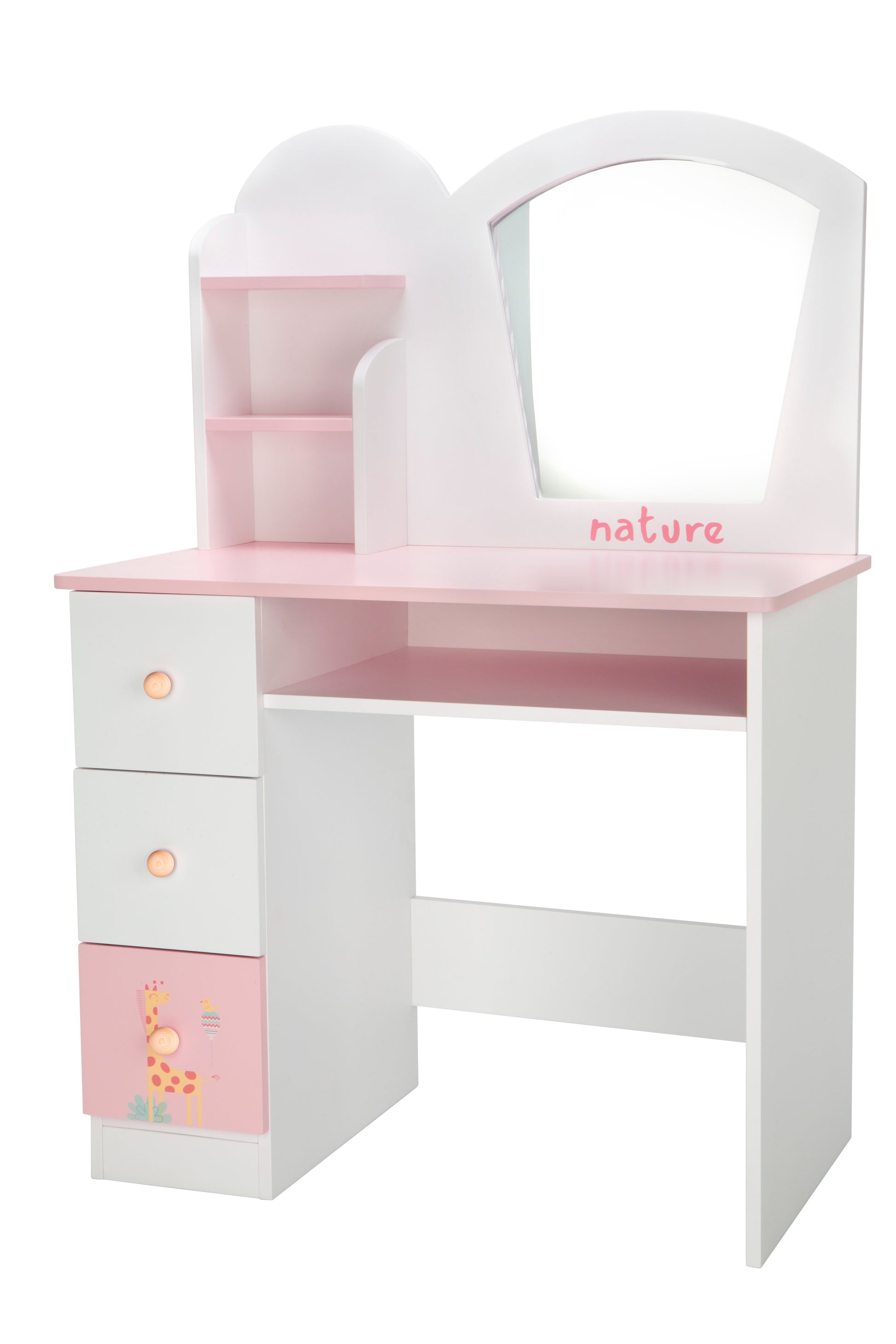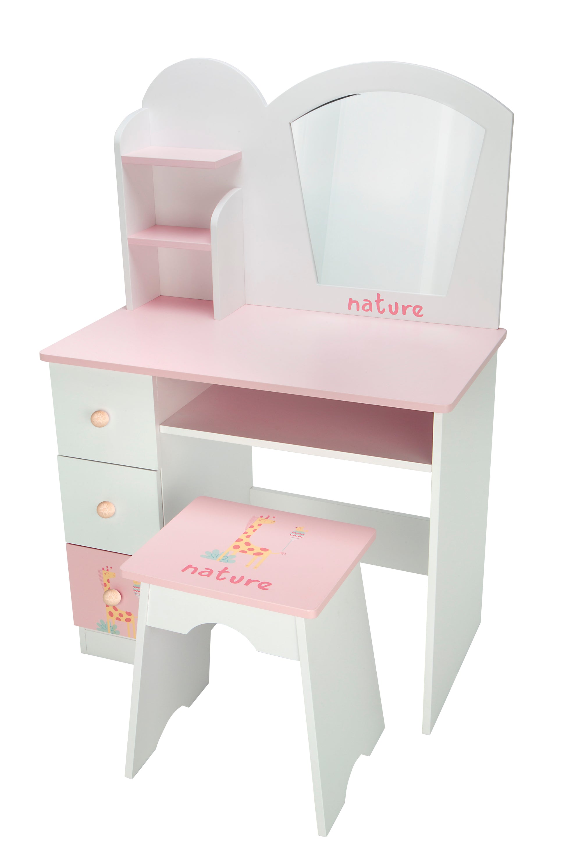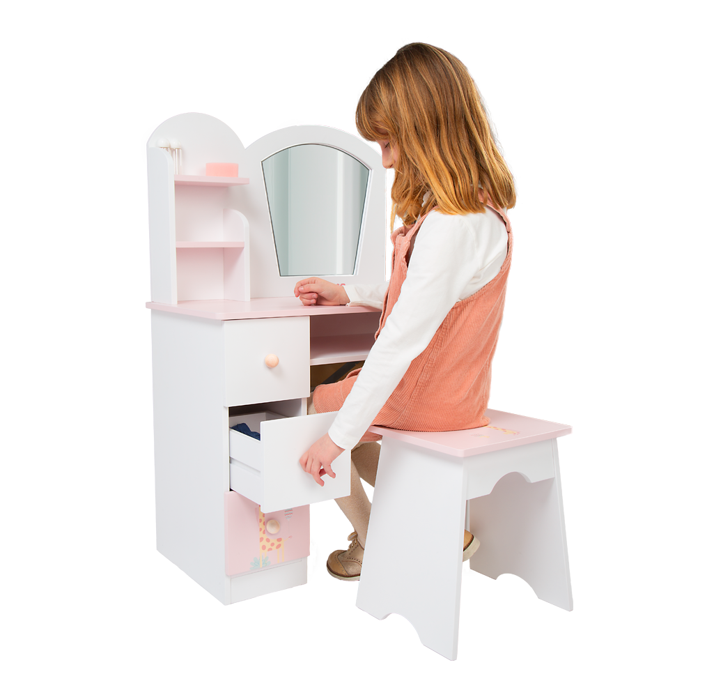 Este precioso tocador cuenta con un espejo integrado y un taburete a juego, perfecto para que los niños disfruten de momentos de juego simbólico, creatividad e imaginación 💕. Su diseño de líneas suaves y colores neutros lo convierte además en un bonito elemento decorativo para la habitación infantil 🧸.