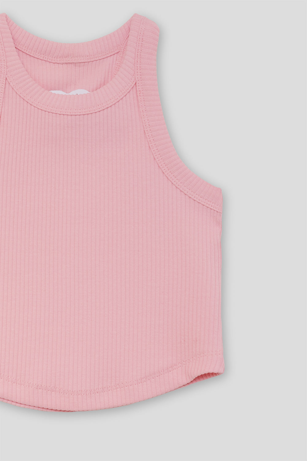 Top para niña de la marca Street Monkey, confeccionado en tejido de algodón canalé, suave, elástico y muy cómodo, ideal para el uso diario en los meses de verano.