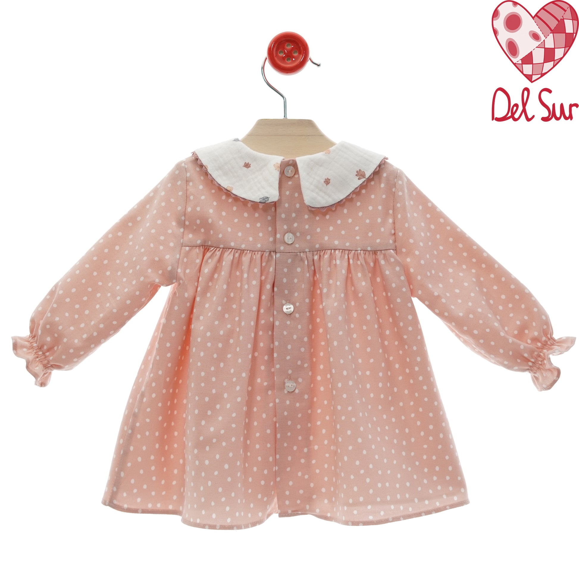 Vestido bebé niña rosa empolvado con topitos y cuello bebé – Del Sur Entretelas (3-36 meses)