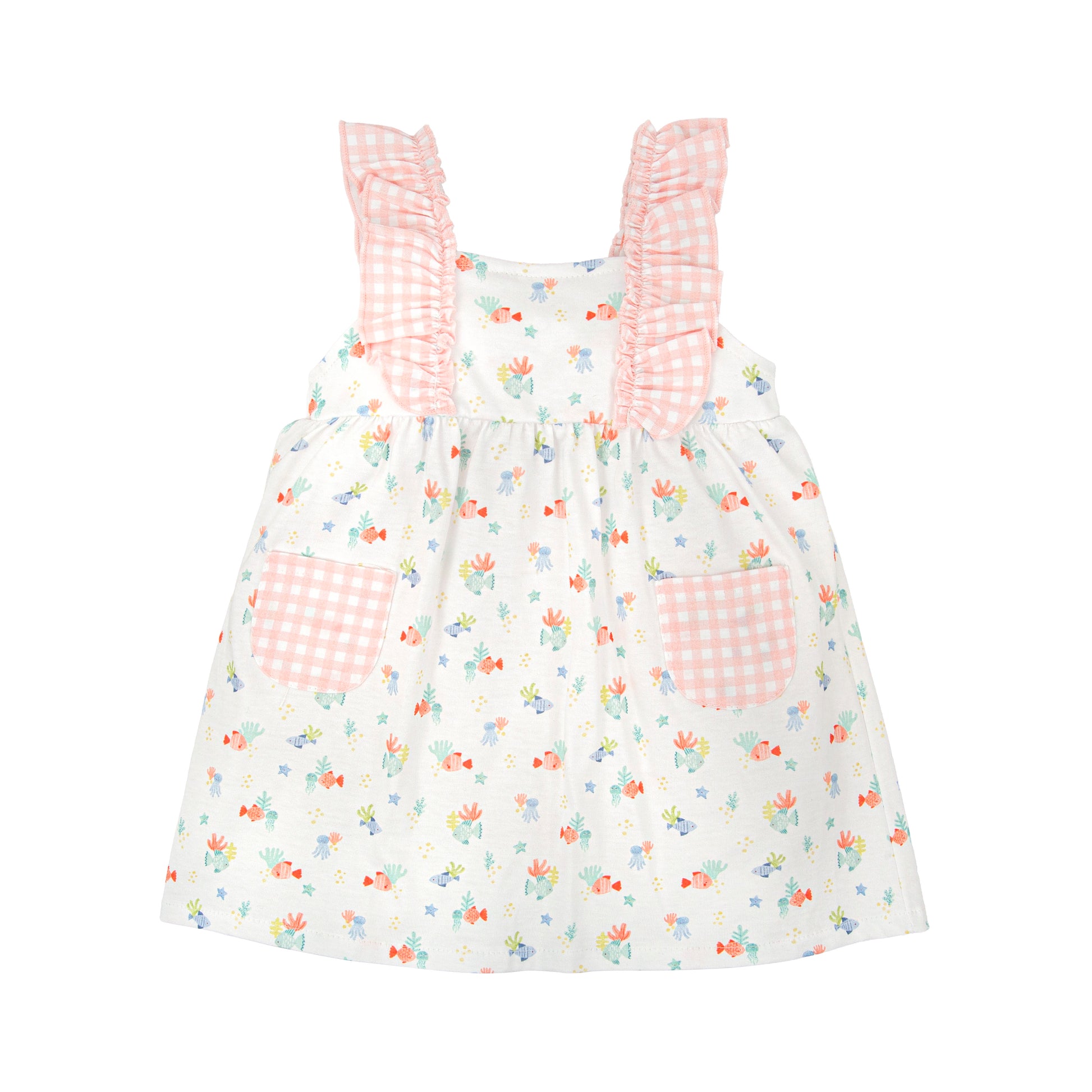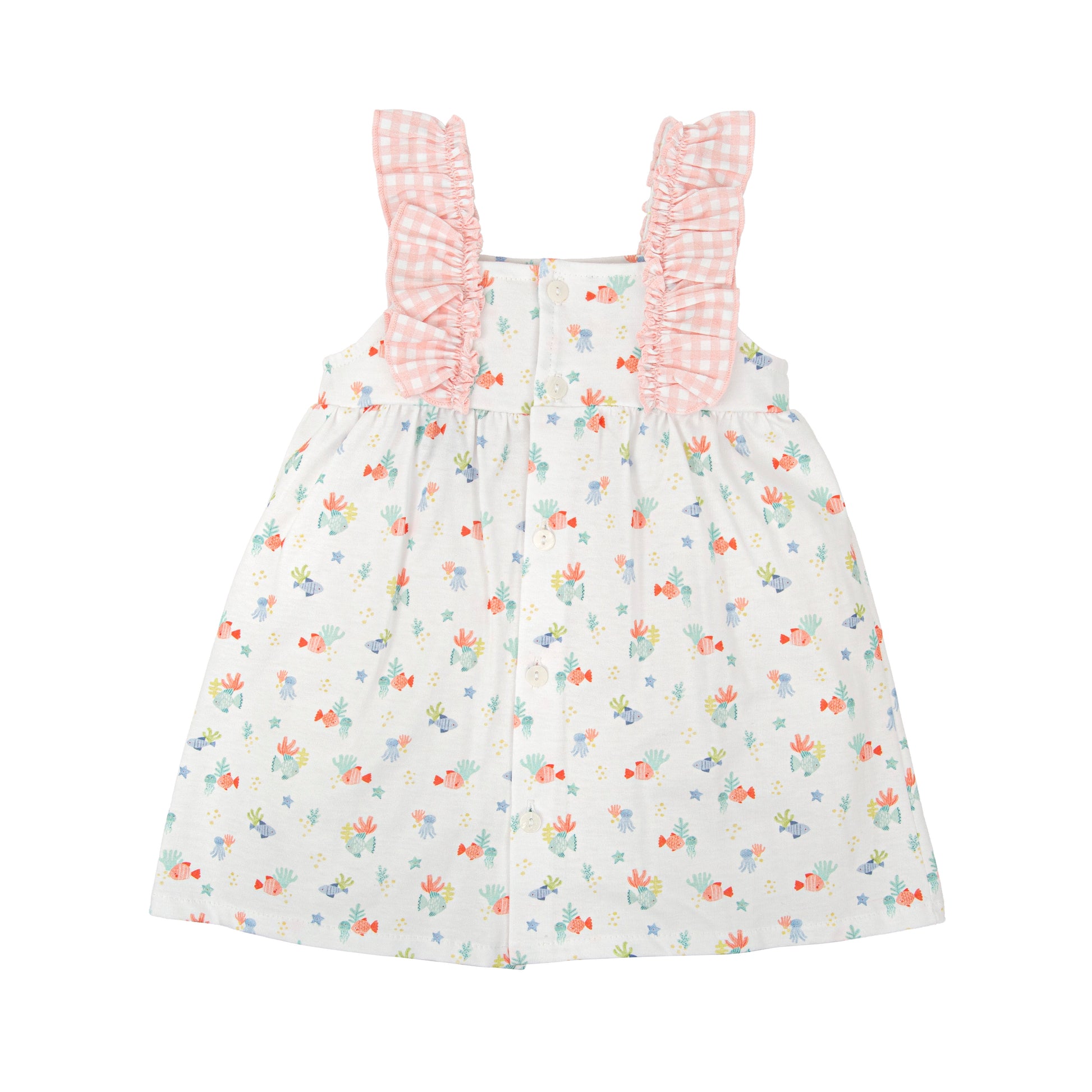 El vestido de la familia Ternura de Babidu es pura dulzura y frescura para los días de verano. Su estampado alegre combinado con los tirantes de volantes en vichy y los bolsillos a juego lo convierten en un diseño especial y muy cómodo para las niñas.