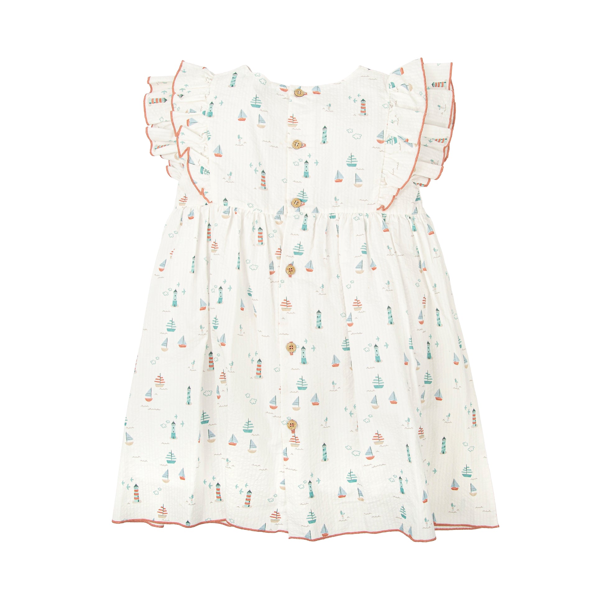 El vestido modelo Claridad de Babidu es una prenda fresca, ligera y llena de encanto para los días de verano. Su delicado estampado de inspiración marinera combinado con los volantes en los hombros y el vivo en contraste aporta un estilo dulce y atemporal.