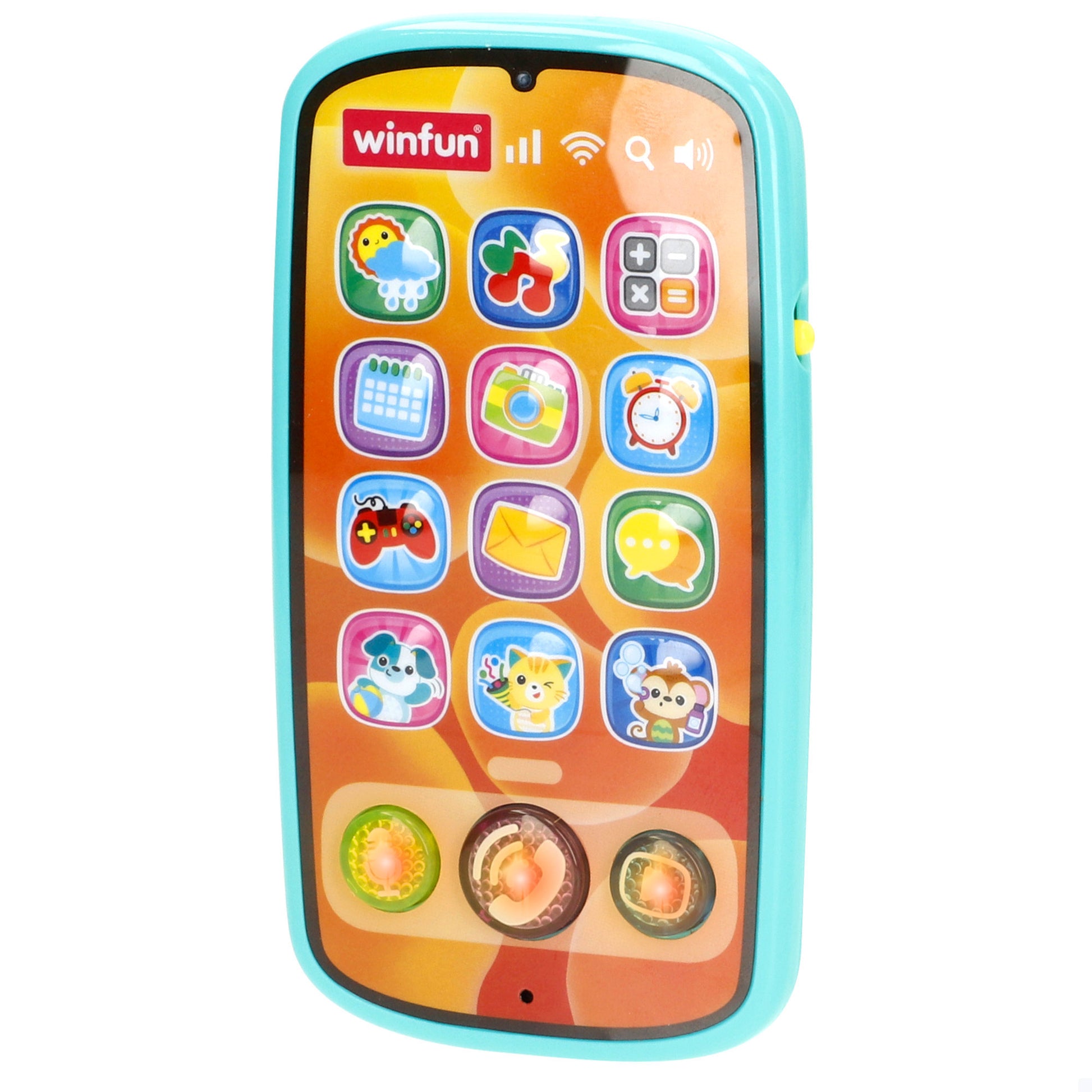 El Smartphone Musical Winfun está pensado para bebés desde los 6 meses, con botones luminosos, melodías alegres, sonidos divertidos y pequeñas actividades que estimulan el desarrollo sensorial y la curiosidad.